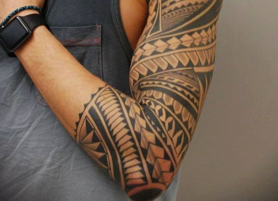 고대 부족의 문양에서 유래된 강렬한 패턴형 타투. 폴리네시아, 마오리족의 상징적 의미를 담고 있다.